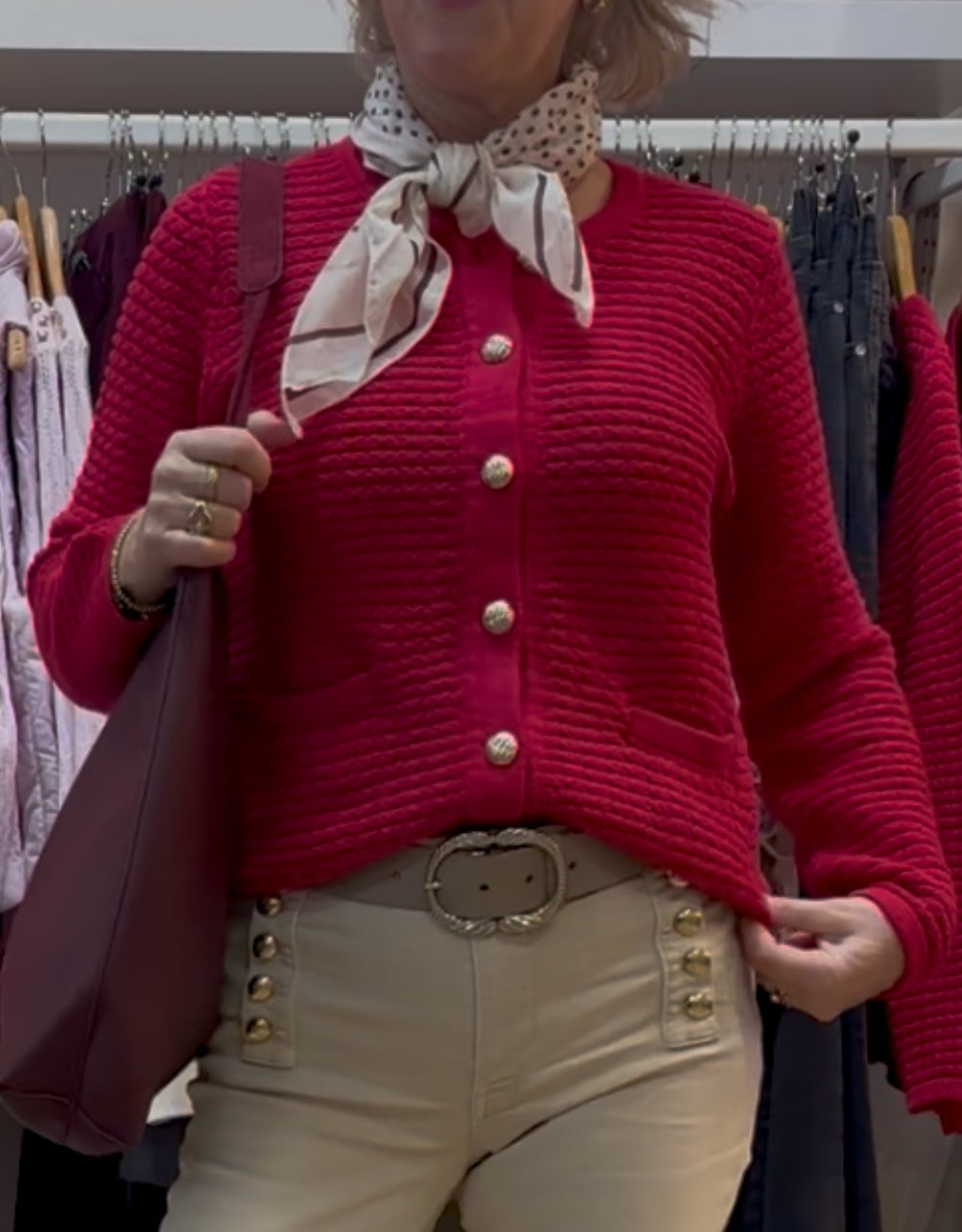 Vest met gouden knopen , fucsia , dikkere kwaliteit katoen/viscose