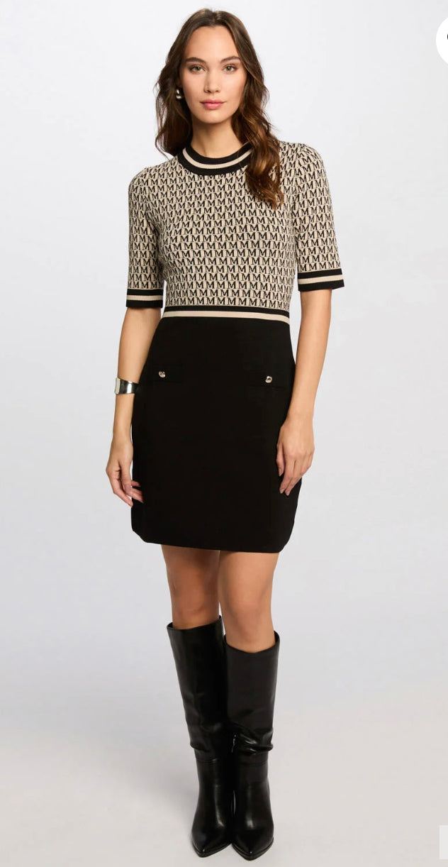 Stevige brei jurk in zwart/ kiezel patroon , Morgan valt klein,