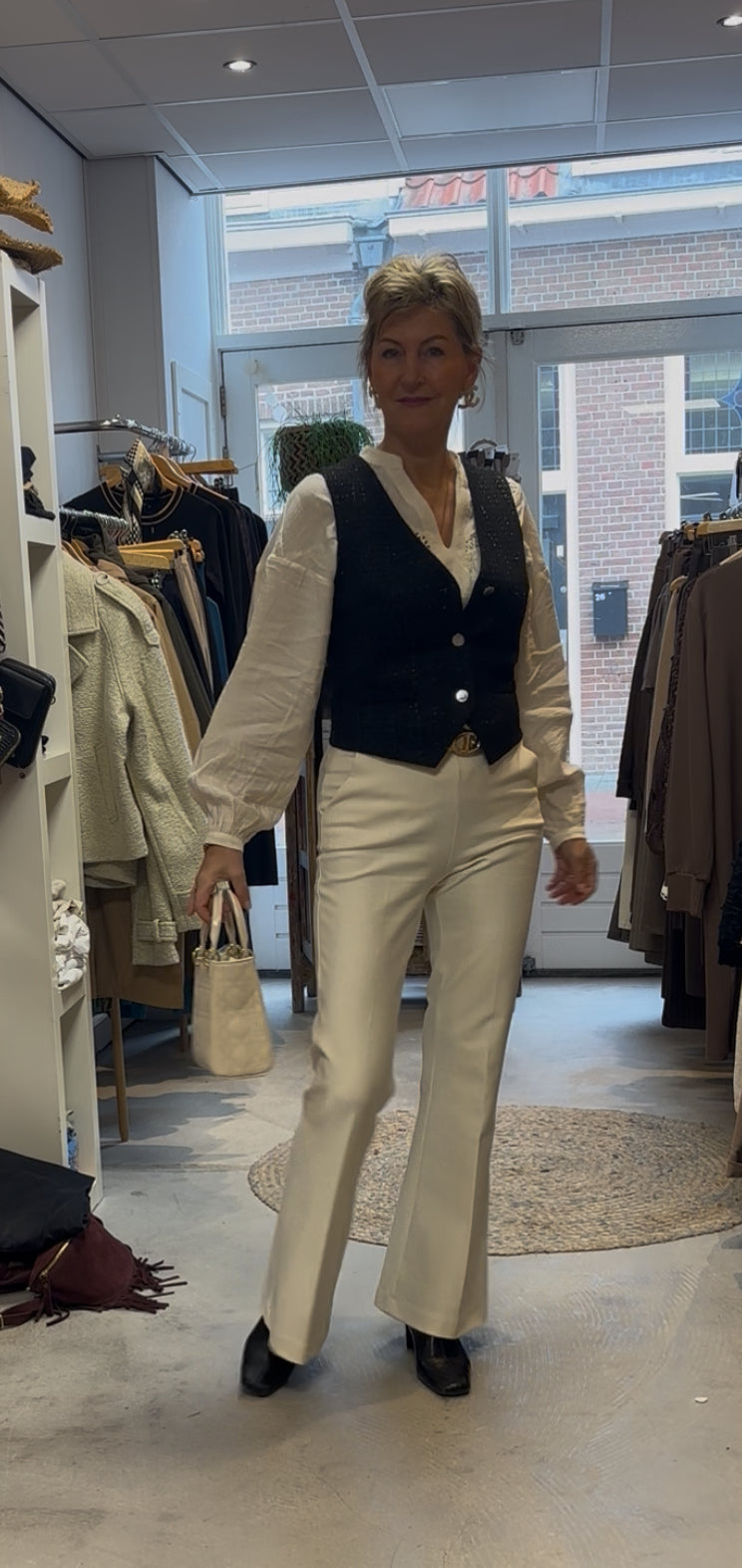 In stevige stof deze mooie basis broek, zit perfect en sluit mooi aan in de taille , met steekzakken,