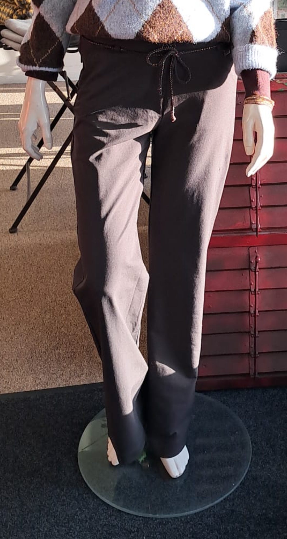 Het bekende Romee model met rechte pijp en gouden koord , nu in deze mooie bruine kleur