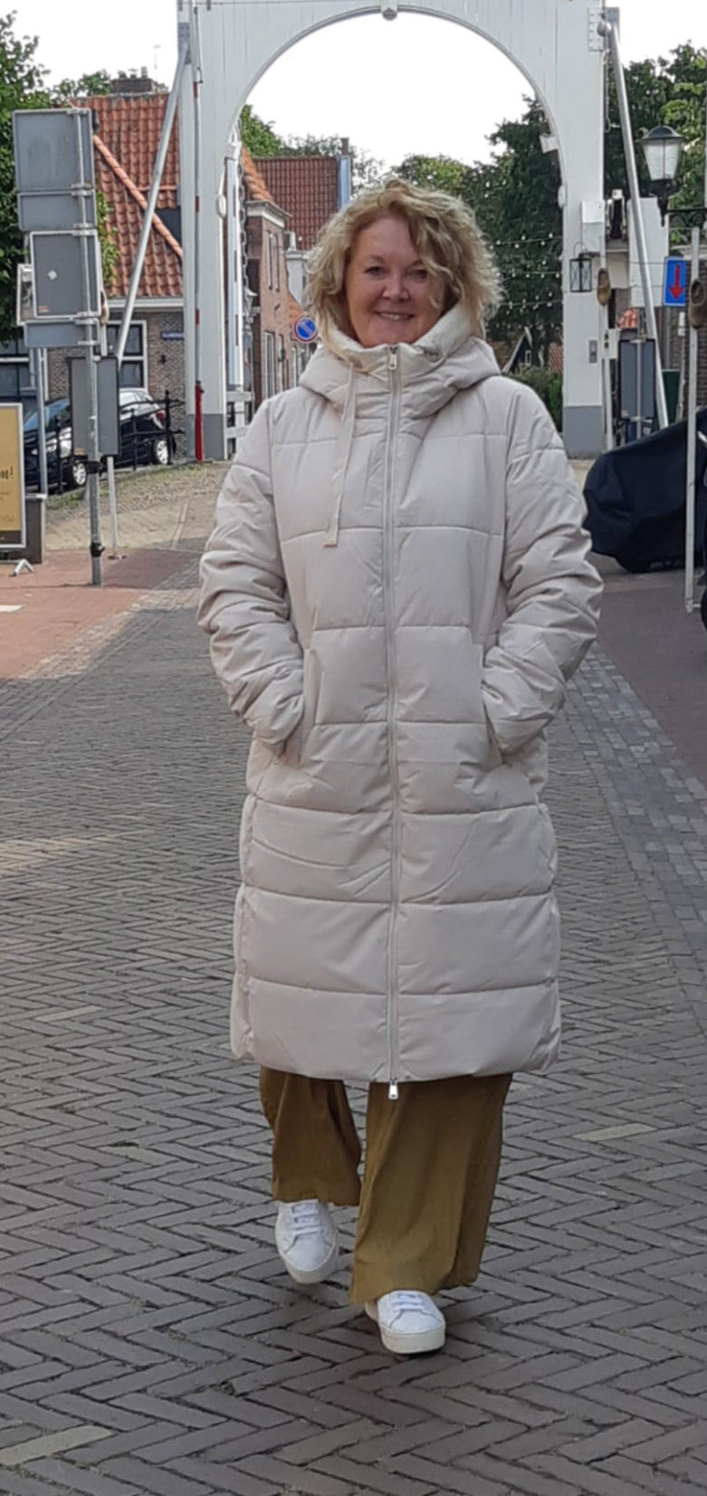 Dik gewateerde Lange jas in Donker offwhite , mooi afgewerkt