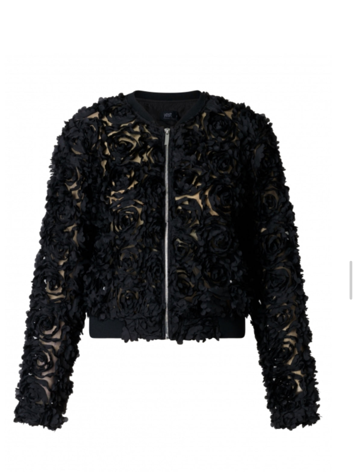 Zwart transparent bloemen stof, gaaf jasje met Rits in zwart ,