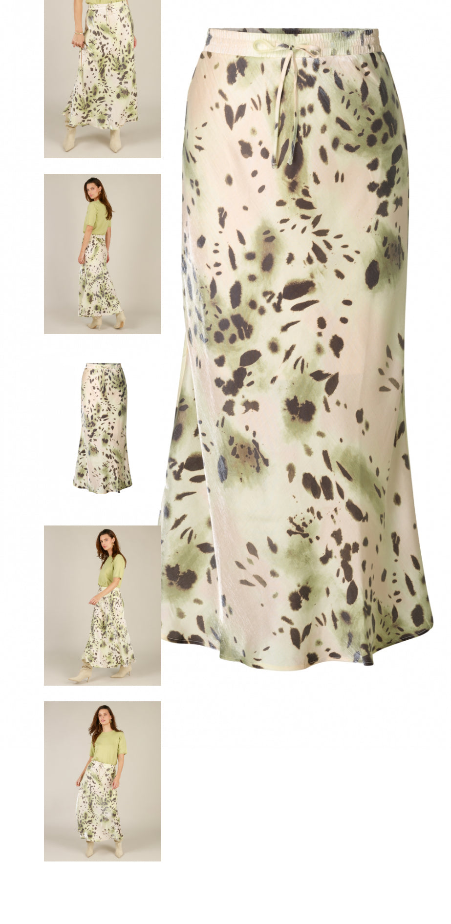 Glanzende rok in mooie print in viscose/nylon , bijpassende blouse ook in shop,